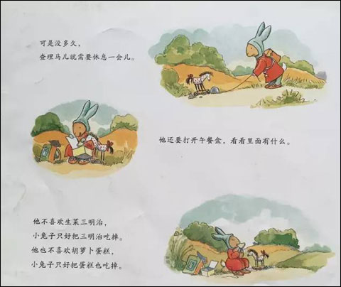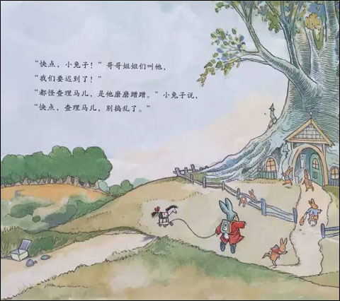 “都怪查理馬兒,是他磨磨蹭蹭。”小兔子說,“快點(diǎn),查理馬兒,別搗亂了。”