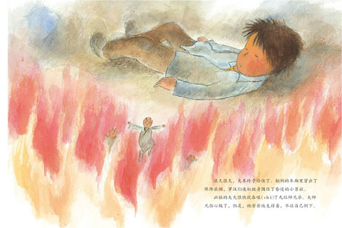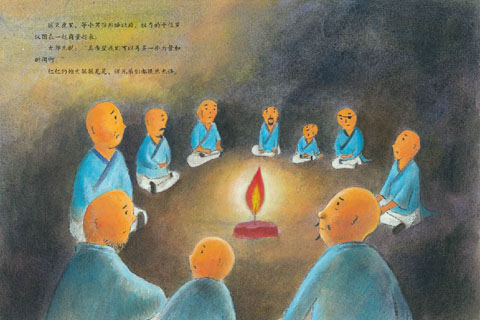 兇猛的大火很快就吞噬(shì)了九位師兄弟。大師兄傷心極了,但是,他苦苦地支撐著,不讓自己倒下。
