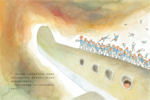 六歲的時候,小男孩坐飛機(jī)出國。高高的天空中突然刮起了狂風(fēng),剩下的四百六十四位羅漢悄悄地溜出去抵擋亂流。