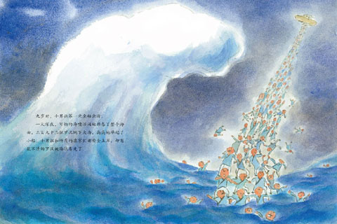 那天晚上,可怕的海嘯洶涌地席卷了整個海面。三百九十二位羅漢跳下大海,高高地舉起了小船。小男孩和所有的乘客們都安全到達(dá)了岸邊,卻有數(shù)不清的羅漢被海浪卷走了。