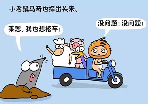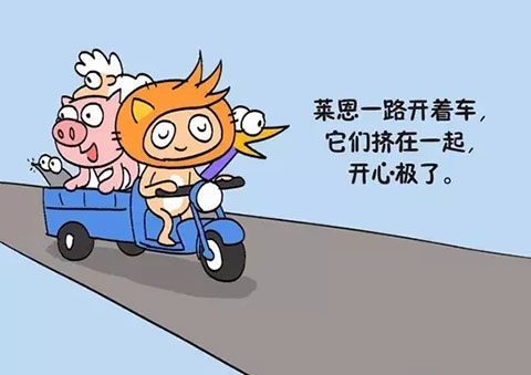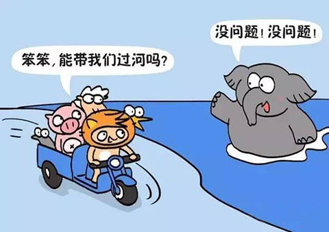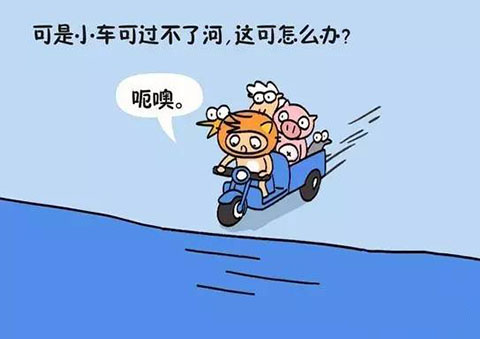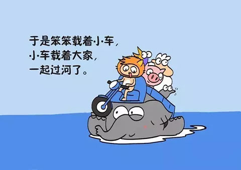 于是笨笨載著小車,小車載著大家,一起過河了。