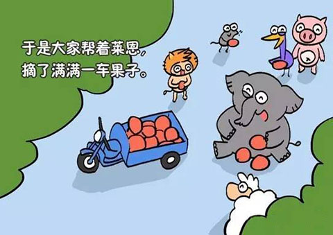于是大家幫著萊恩,摘了滿滿一車果子。