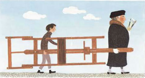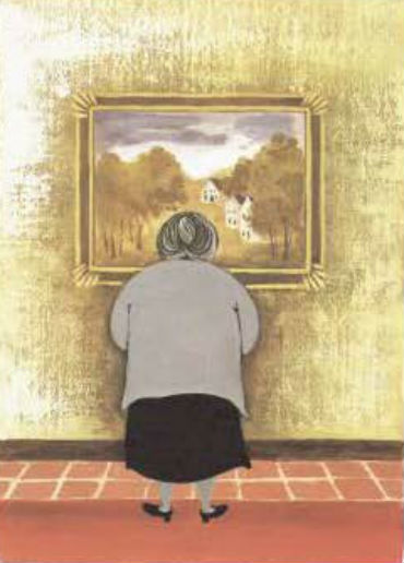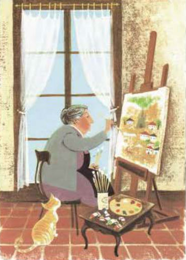 孩子們為了慶祝艾瑪的七十二歲生日,送給她一幅畫,畫的是山那邊的小村莊。