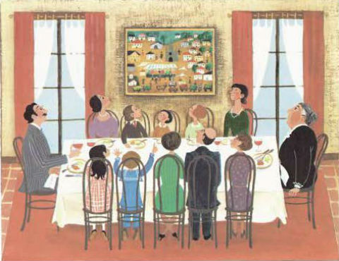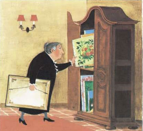 大家正在吃晚餐,一個小孫子突然指著墻上的畫問:“這幅畫是怎么回事?這不是我們送您的那幅!”