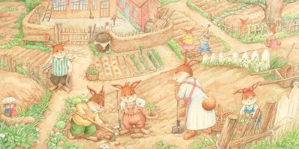 爸爸媽媽帶著我們在菜園里撒下各種各樣的菜籽。
