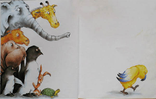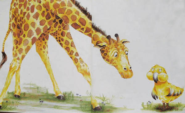 “真對不起,”長頸鹿太太嘆了一口氣,“可是我不像你那樣長著一對翅膀呀。”