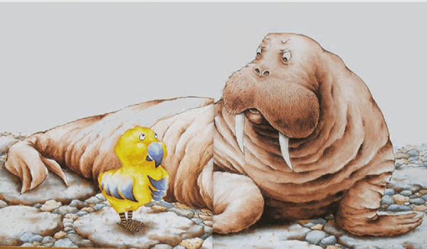 后來,秋秋遇到海象太太。“哦,海象太太!”他大聲說,“你和我一樣有胖嘟嘟的臉蛋,你是我媽媽嗎?”