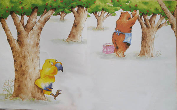 當秋秋看到正在摘蘋果的熊太太的時候,他知道她一定不會是他的媽媽。熊太太長得跟他一點兒都不像。