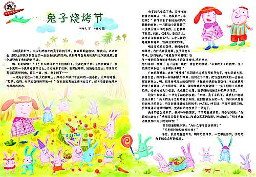 一只兔子坐在一個巨大的樹墩上,兩只小爪敲打著面前的一面小鼓,大聲吆喝著:“燒烤,燒烤,兔子的燒烤世界第一!”收割后的麥地顯得有些空曠,那有節(jié)奏的吆喝聲傳得很遠很遠。