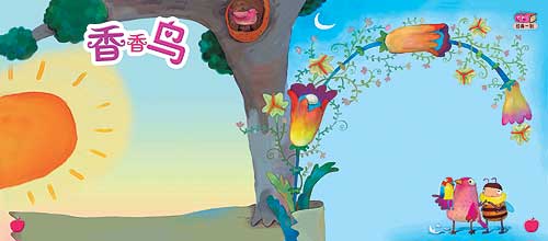 如果有一天,你在花叢里看見一只五彩鳥,他和蜜蜂飛在一起,那就是香香鳥啊!(金波文 唐筠畫)
