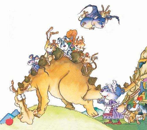 12.大蝙蝠正在天上飛,他的背上坐著從很遠的地方趕來的動物寶寶。
