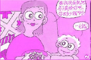 姑姑喬遷新居,桐媽桐寶去做客。新桌新椅新板凳,桐寶東張西望,看得眼花繚亂。“姑姑家漂亮嗎?”“漂亮,等我長大也要買一個這樣的家。”桐寶宣布自己的“遠大理想”。“那我現在就把房子賣給你,你能出多少錢啊?”姑姑故意逗他。“嗯——”桐寶沉思片刻,“一毛錢吧。”“那不行,太少了!你出一百萬,我才能賣給你。”“太貴了,便宜點兒吧,”桐寶開始很“專業”地和姑姑講起價來,“我出兩毛錢,行么?”見姑姑沒反應,桐寶繼續加價:“三毛錢?”看姑姑還是不同意,桐寶下定決心:“好吧,最多五毛錢,賣不賣?”