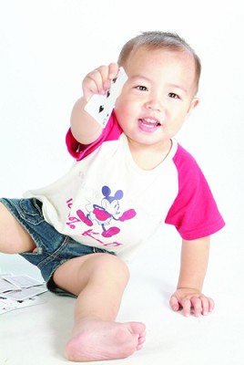 我把手中的牌分成平均的兩份后,把其中的一份拿給他說:"兒子,你看這牌上的數字共有兩種顏色,一種是紅色,一種是黑色,現在咱們把黑色、紅色分別挑出來放在一起,誰最先分好,誰就贏了。"兒子聽完我的話嘴里一邊念著黑色、紅色開始動手了。為了增加趣味性,我設計了五局三勝的比賽規則,誰贏了,就可以得到獎品(事先準備好)。我故意讓他贏幾次,以提高他的信心和對游戲的持久力。