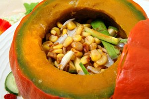 健康提示:雞肉富含蛋白質,南瓜富含鈣、磷、鐵、碳水化合物和多種維生素,其中胡蘿卜素含量較豐富。