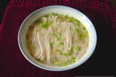 ①將面條放入開水鍋中煮熟,面要煮軟些。撈出后用涼開水泡一下,盛到碗中備用。②將湯(肉湯、骨頭湯、雞湯都可以,無肉湯,用白開水也可以)燒開。放入香油、蝦皮、蔥花、醬油等調料,停火后放入味精,然后將湯澆到面上拌食。